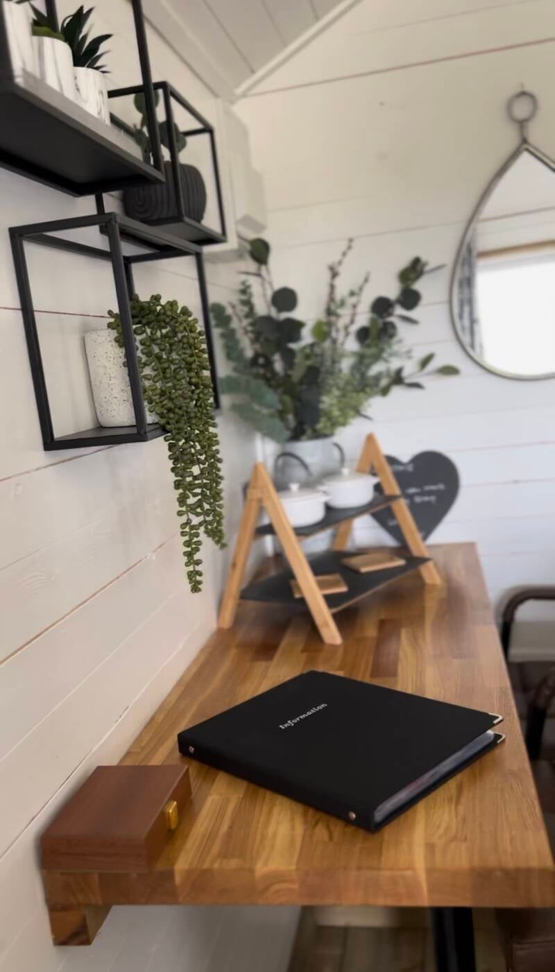 this hand-built shepherd hut offers a charming retreat for nature lovers and adventurers alike. Featuring rustic yet cozy interiors, the hut boasts four inviting beds, a well-appointed bathroom With a spacious shower, a quaint dining table, and a fully equipped kitchen for preparing delicious meals.